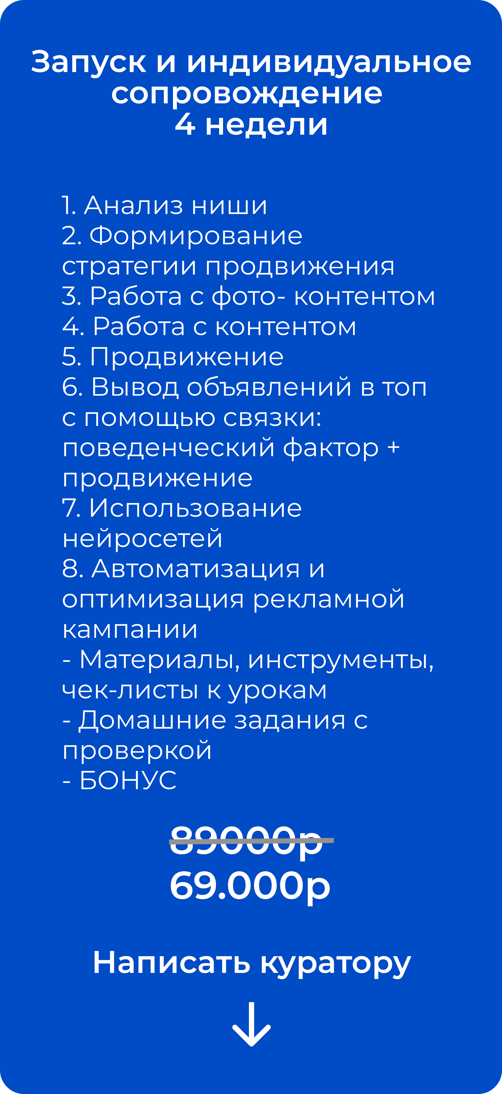 Узнаете правила и лайфхаки для привлечения клиентов. Оформите продающий профиль. Научитесь создавать продающий контент для объявлений.